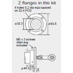 Flange mounting kit for Penny & Giles SLS320 Linear Sensors. Two flanges in this kit of 4 holes 5.2 diameter equi-spaced on 52.4 PCD. Mounting recommendation for all un...